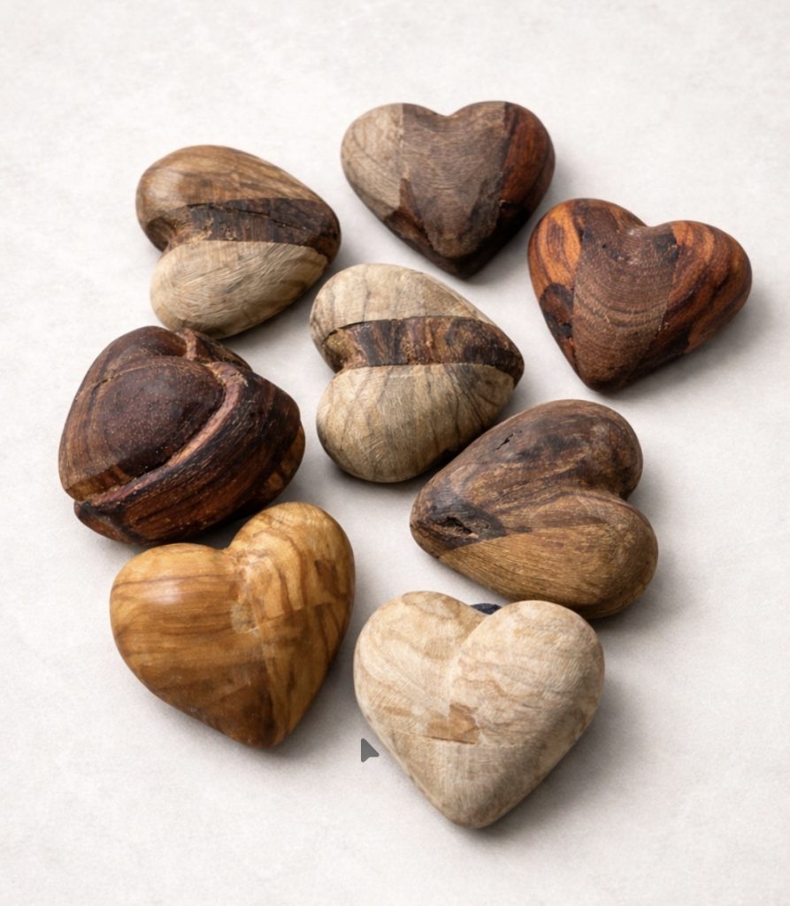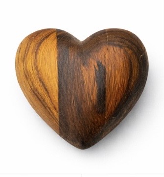 Each Ironwood heart is shaped slowly by hand from natural hardwood.